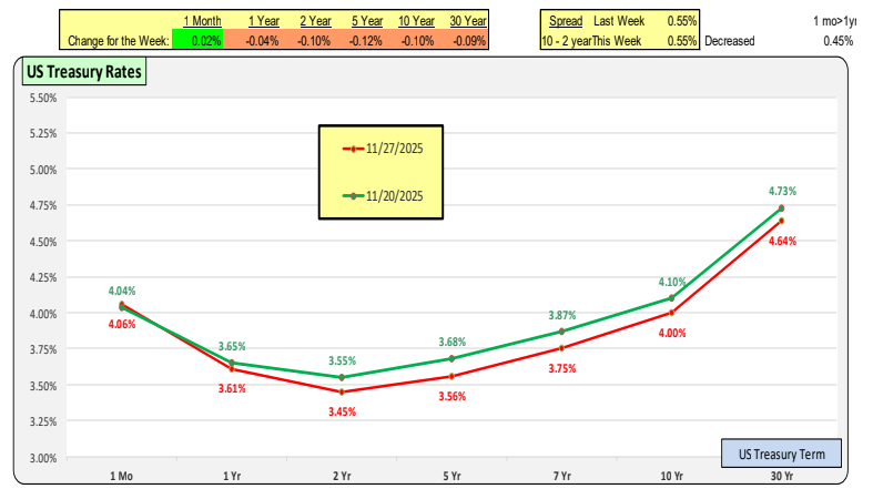 For the past week, 10 Year Treasury rates were down 10bp. Net change in 2 weeks down 8bp. Holiday impacts the 14 day measurement period.