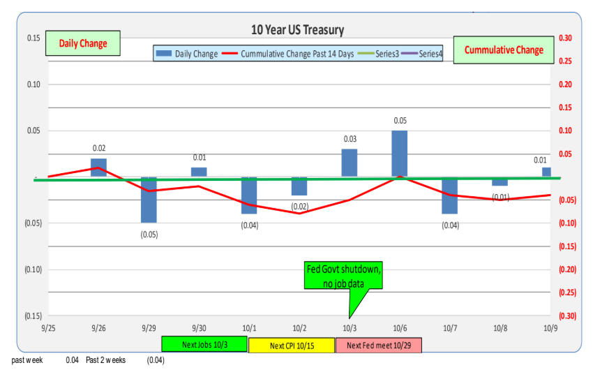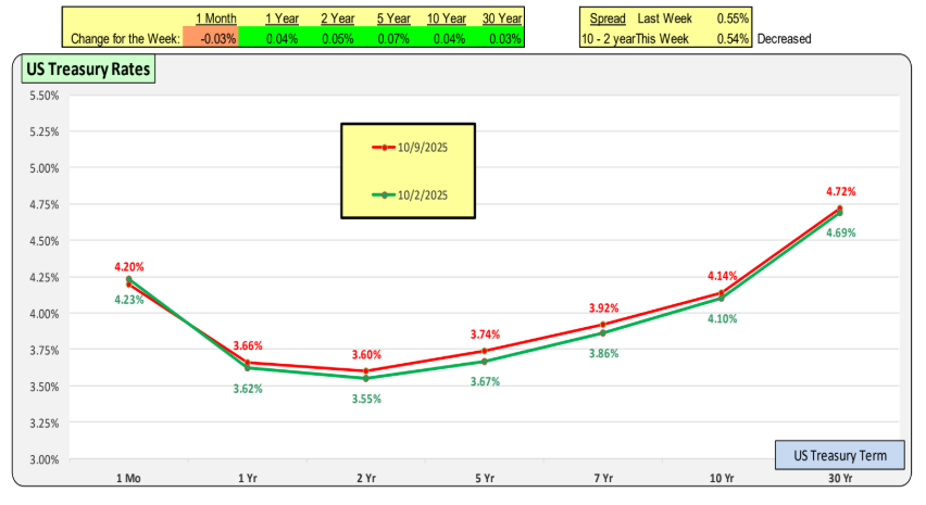 10 Year Treasury UP 4bp for the Single Week Ending 10.9.25 DOWN 4bp For the Prior 2 Weeks