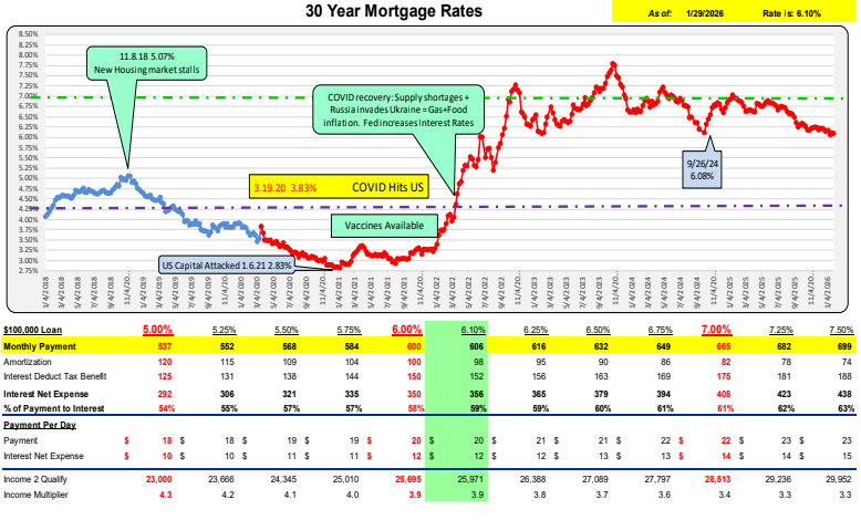 For the week ending 1.29.26 Mortgage rates increased 1bp to 6.10%.