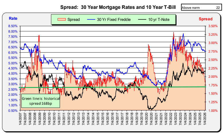 For the week ending 2.5.26 mortgage rates increased 1bp, mean while the 10 Year Treasury rates were down