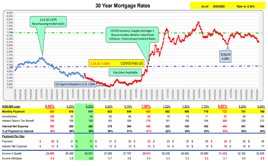 Mortgage Rates increased 4bp at 6.30% for the week ending 9.25.25